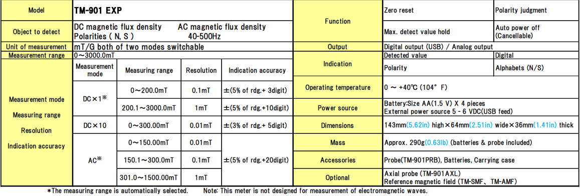 - Range covering frequency for measuring AC magnetic flux density is expanded.(40 - 500Hz)