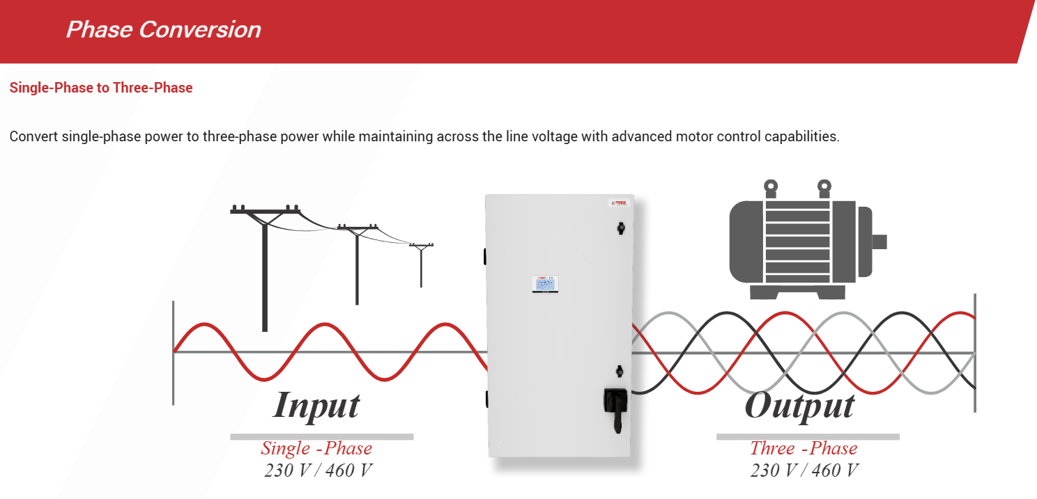 The Phase Perfect® is the world’s only digital phase converter. Utilize our solid-state phase conversion technology to power single or multiple three-phase loads from a single-phase source quietly, efficiently, and reliably.