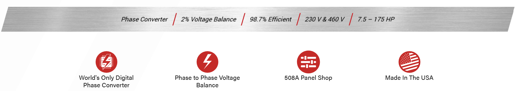The Original Phase Perfect® 7.5-100+ horsepower phase converters fully customizable through the panel shop to meet any need.